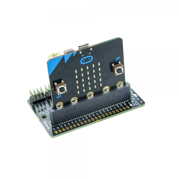 The board includes an integrated Edge Connector for the BBC micro:bit . Expansion Pads allow the connection of this board with other compatible micro:bit accessory boards using the “Link” pluggable pin header.