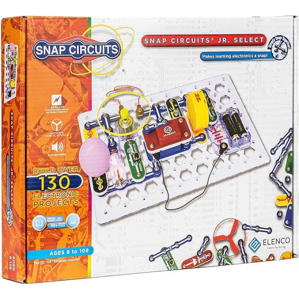 Elenco Snap Circuits© makes learning electronics easy and fun! Just follow the colourful pictures in our manual and build exciting projects such as a flying saucer; alarms; doorbells and much more! You can even play electronic games with your friends. All parts are mounted on plastic modules and snap together with ease. Enjoy hours of educational fun while learning about electronics. No tools required. Includes Project Manual